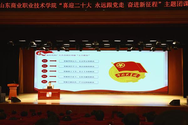 5月27日,山東商院舉辦“喜迎二十大 永遠(yuǎn)跟黨走 奮進(jìn)新征程”主題團(tuán)課。學(xué)院黨委書(shū)記張志東以《堅(jiān)定信念跟黨走揚(yáng)帆起航新征程》為題,通過(guò)線上線下的方式為1000余名師生代表講授主題團(tuán)課。