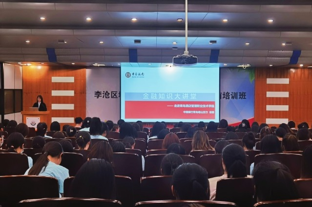 中國銀行青島嶗山支行相關負責人、青島酒店學院師生代表400余人參加講座。