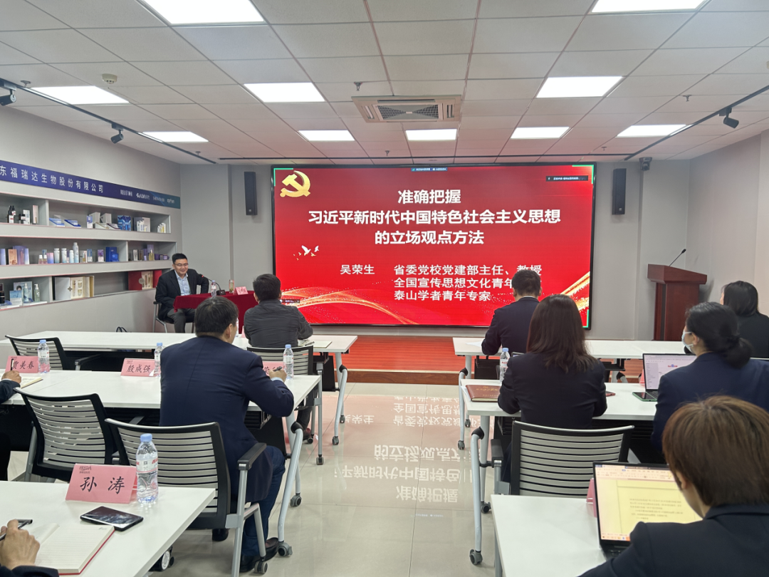 會上,中共山東省委黨校黨建部主任、教授、碩士生導師吳榮生,以“準確把握習近平新時代中國特色社會主義思想的立場觀點方法,堅持好、運用好貫穿其中的立場觀點方法”為主題作專題輔導報告。報告內容豐富、重點突出,既結合歷史、又觀照現實,與會人員深受啟發。