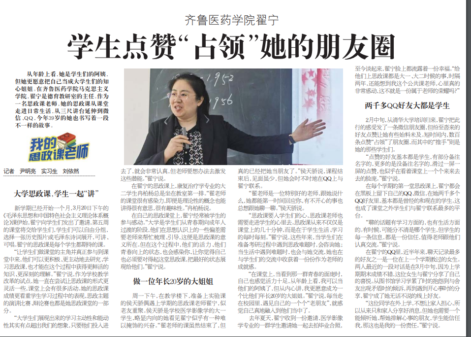 【學思想、強黨性、重實踐、建新功】齊魯醫藥學院翟寧:學生點贊“占領”她的朋友圈