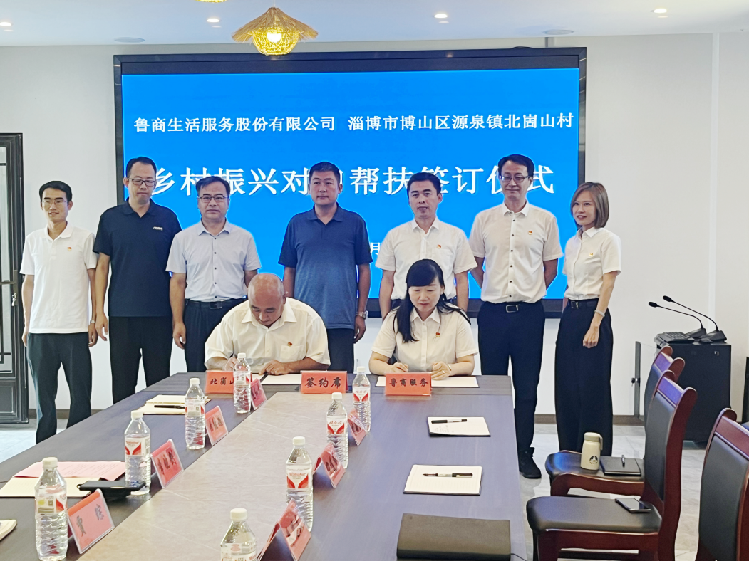 9月7日,魯商服務與淄博市博山區源泉鎮北崮山村委舉辦“鄉村振興對口幫扶”協議簽約儀式暨黨建共筑共建活動。