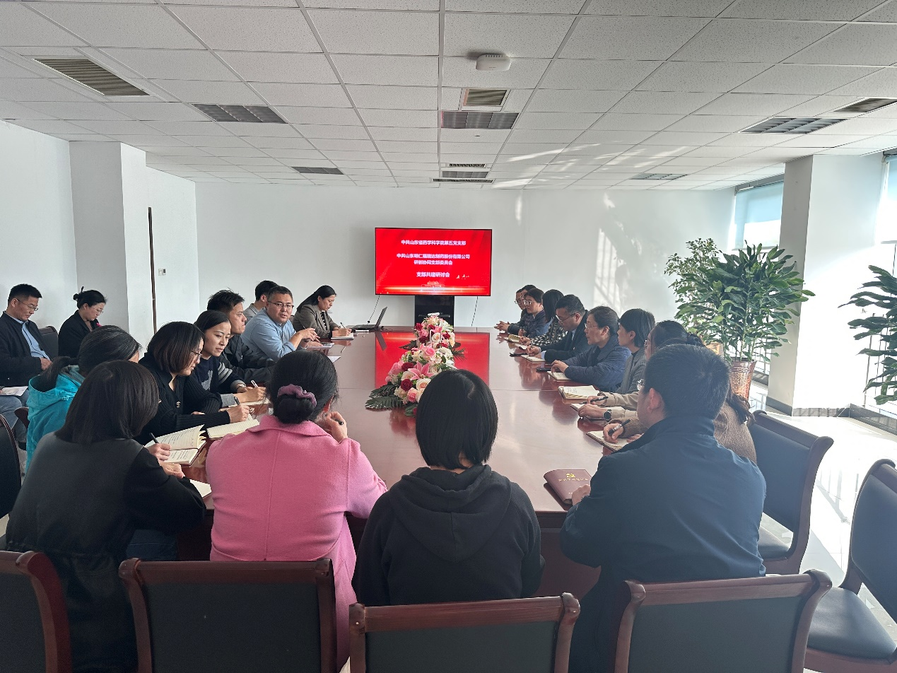 參觀結(jié)束后,雙方黨員聚焦集團(tuán)改革發(fā)展戰(zhàn)略,圍繞“思想大解放、作風(fēng)大轉(zhuǎn)變、 績(jī)效大提升”,開展了座談交流,并就魯商集團(tuán)醫(yī)藥板塊研發(fā)一體化在研項(xiàng)目進(jìn)行了深入溝通。以科技成果轉(zhuǎn)化的”為切入口,圍繞中試放大、工藝驗(yàn)證等核心環(huán)節(jié)遇到的問(wèn)題開展交流研討。雙方表示將進(jìn)一步提升工作作風(fēng),共同建立“需求共提、難題共解”的常態(tài)化合作機(jī)制,構(gòu)建“支部聯(lián)建、人才聯(lián)育、項(xiàng)目聯(lián)創(chuàng)”的三維合作體系,加快實(shí)驗(yàn)室成果轉(zhuǎn)化為高質(zhì)量發(fā)展動(dòng)力的步伐。