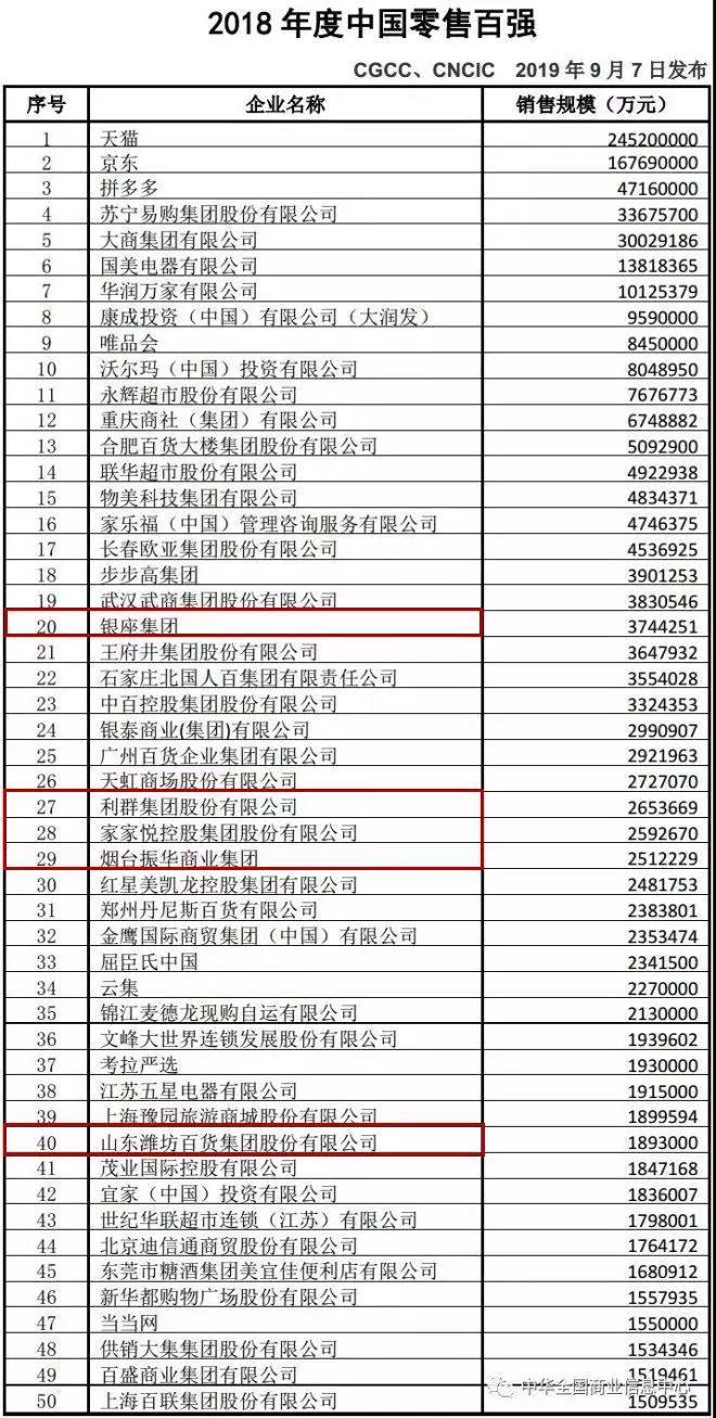 9月7日,在重慶舉辦的第十九屆亞太零售商大會(huì)暨國(guó)際消費(fèi)品博覽會(huì)上,中國(guó)商業(yè)聯(lián)合會(huì)、中華全國(guó)商業(yè)信息中心發(fā)布2018年度中國(guó)零售百?gòu)?qiáng)名單,銀座集團(tuán)以超370億元的銷售規(guī)模位列全國(guó)二十、山東首位。