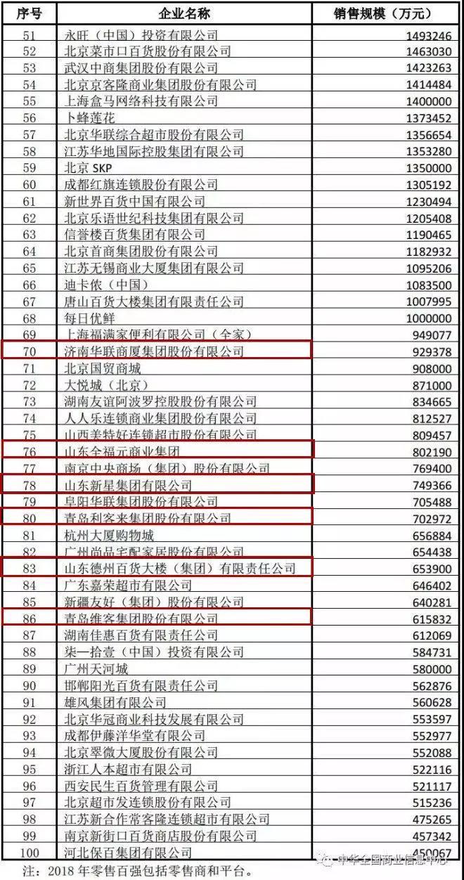 2018年,天貓和京東分別以2.45萬(wàn)億和1.68萬(wàn)億的銷售規(guī)模領(lǐng)跑零售百?gòu)?qiáng),拼多多同比增速234.0%,躋身百?gòu)?qiáng)第三名。本次零售百?gòu)?qiáng)榜單中,山東共有11家企業(yè)入圍。
