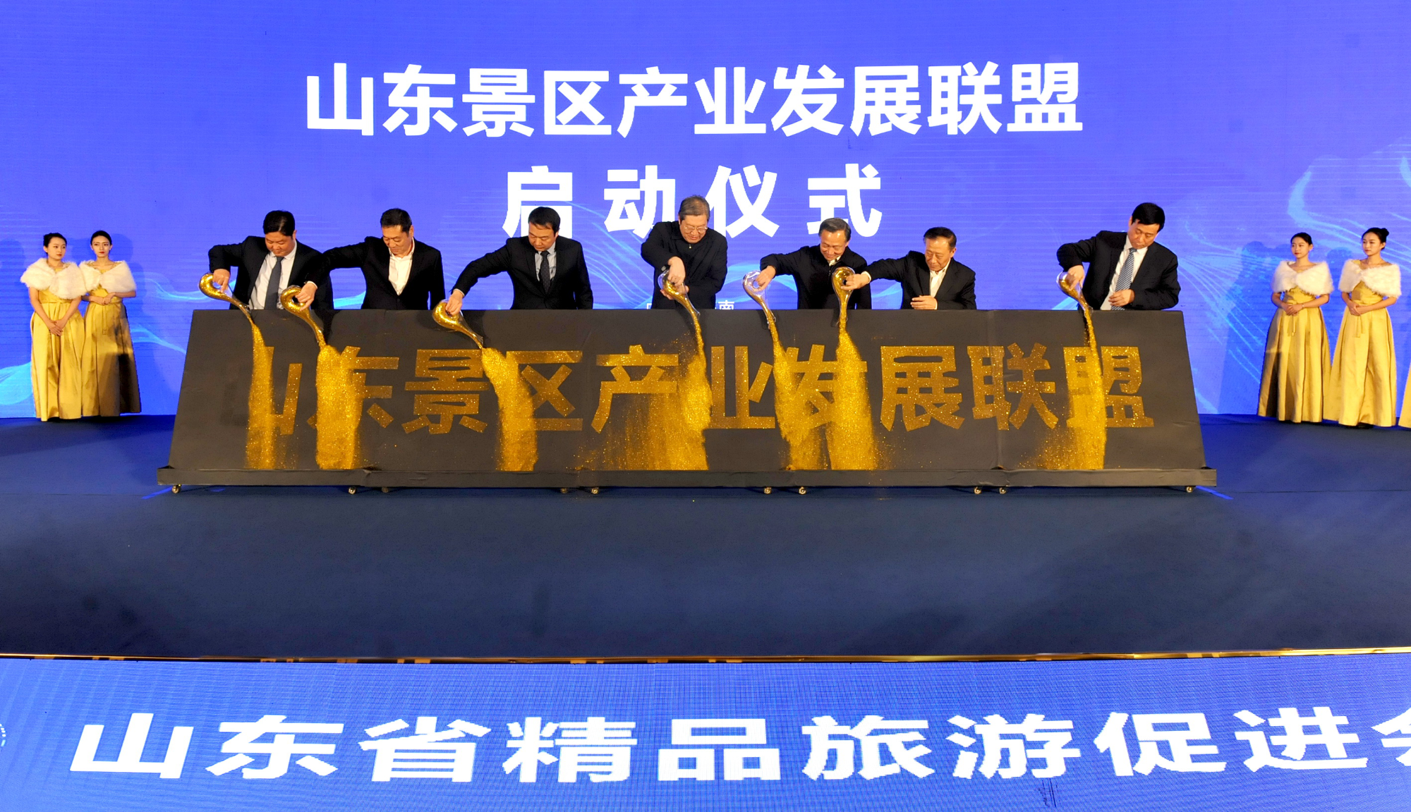 會上,張建國、雷建國、高洪雷、杜文彬、柳樹公,與山東舜和酒店集團董事長、山東省精品旅游促進會會長任興本,省文旅集團副總經理、山東文旅景區投資集團董事長、山東景區產業發展聯盟理事長季將,共同啟動山東景區產業發展聯盟。