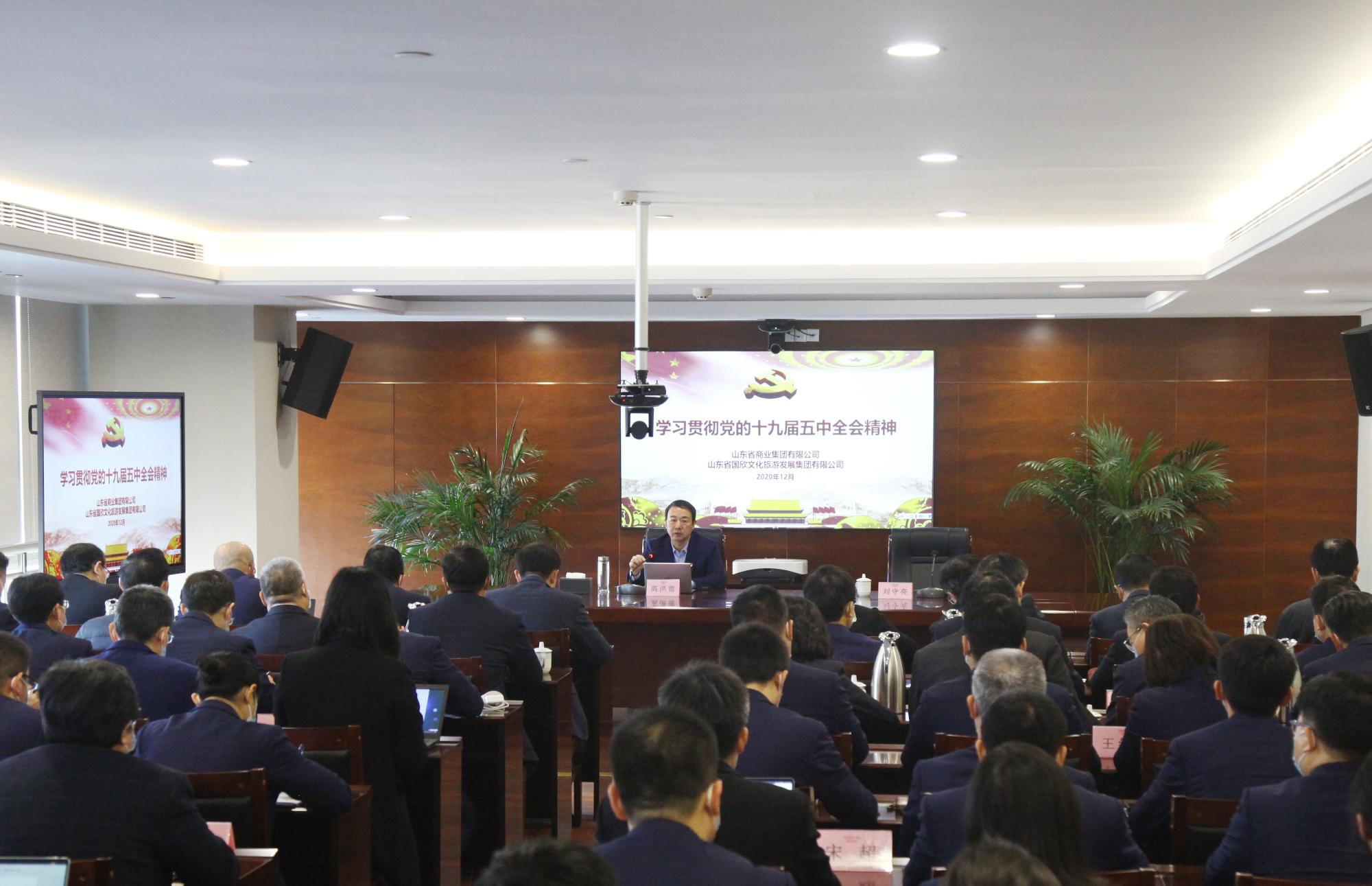 12月16日上午,省商業集團有限公司(簡稱魯商集團)、省國欣文化旅游發展集團有限公司(簡稱國欣文旅)聯合舉辦學習貫徹黨的十九屆五中全會精神宣講會,省屬企業宣講團成員,魯商集團黨委書記、董事長兼國欣文旅黨委書記、董事長高洪雷圍繞學習貫徹黨的十九屆五中全會精神作宣講報告,魯商集團黨委副書記劉守亮主持。
