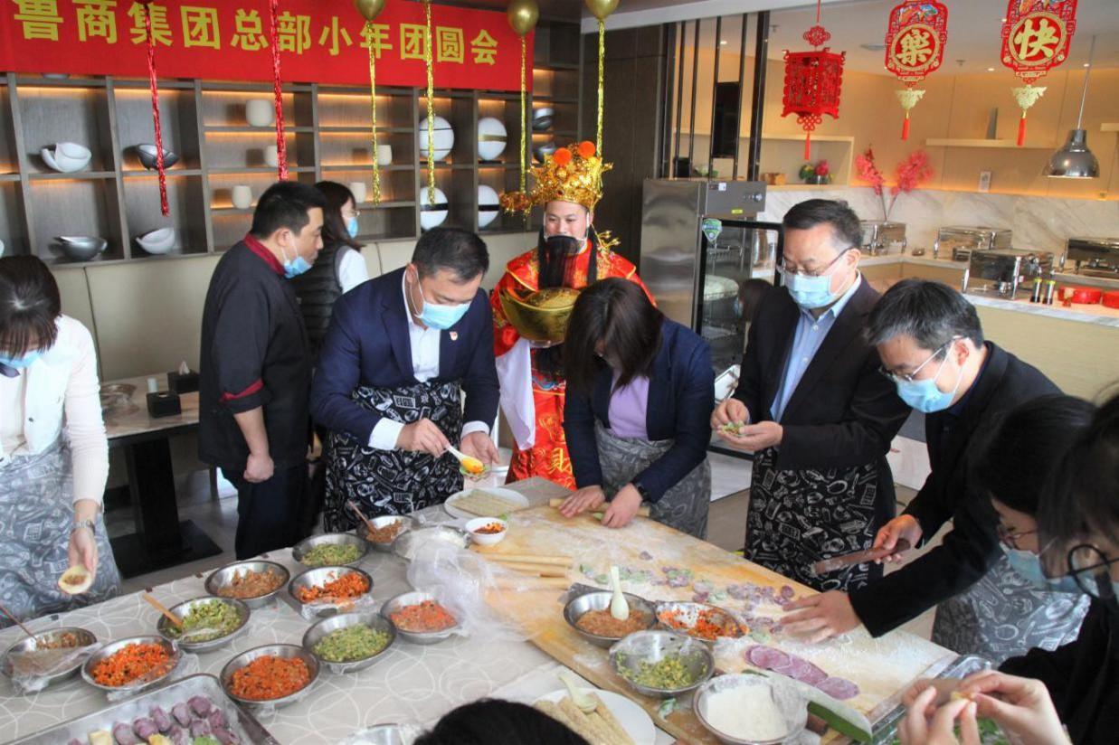 上午10點,集團總部員工餐廳已經為大家準備好了多種餡料和多彩面團,來自總部各部室的員工代表齊聚一堂、大展身手,熱熱鬧鬧地包起水餃來。不太熟練的同事積極向身邊的“廚藝小能手”取經學習,你搟皮我包餡兒,互幫互助,一會兒功夫一盤盤美觀飽滿皮薄餡大的餃子就成型了。