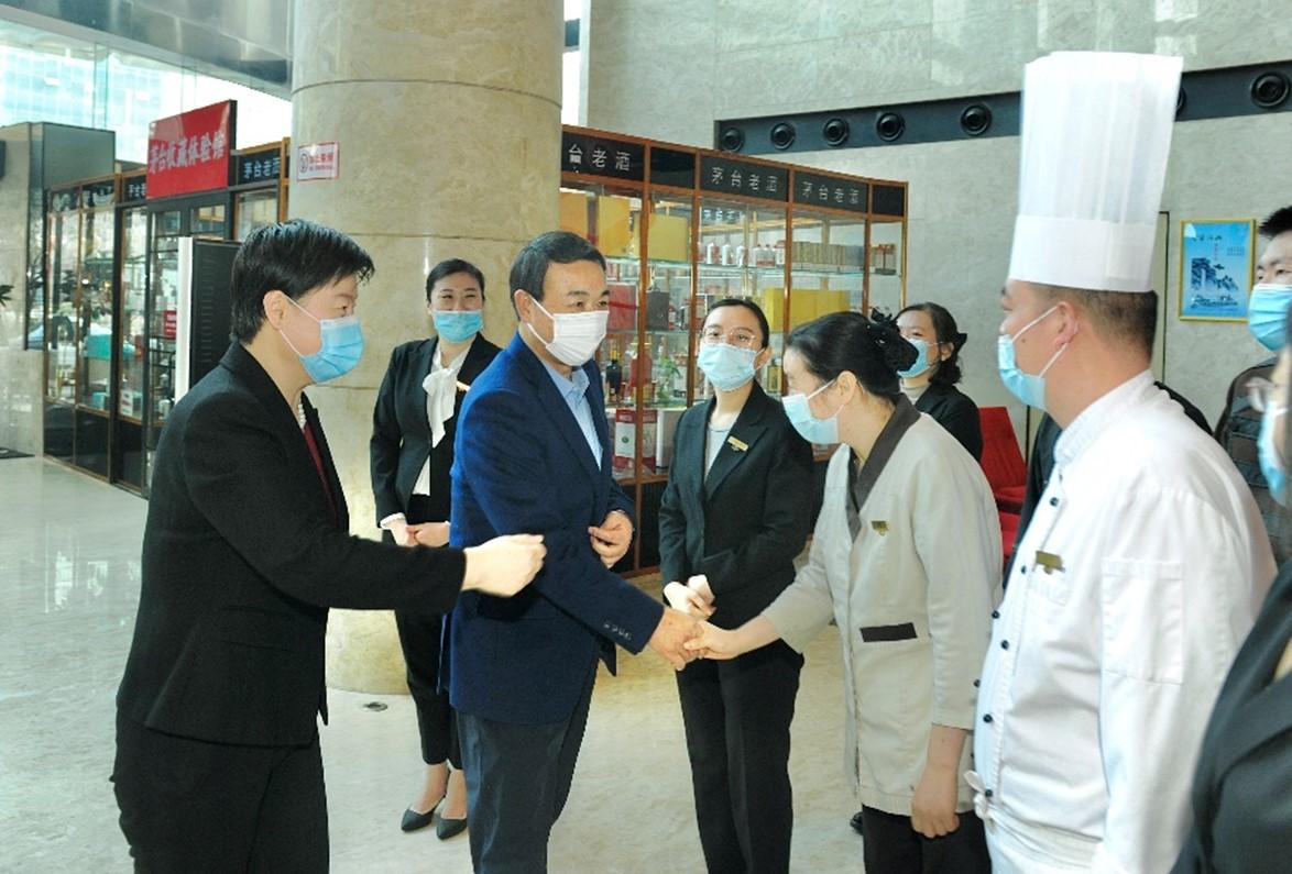 2月11日(農歷大年三十)上午,魯商集團黨委書記、董事長兼國欣文旅董事長高洪雷,先后來到濟南索菲特銀座大飯店、銀座泉城廣場店,看望慰問堅守在工作崗位的一線干部職工,代表集團向廣大干部職工致以節日問候和新春祝福,同時實地調研春節期間民生商品市場供應、便民消費服務和疫情防控措施落實情況。魯商集團首席電子商務官,銀座集團黨委書記、董事長布廷現陪同。