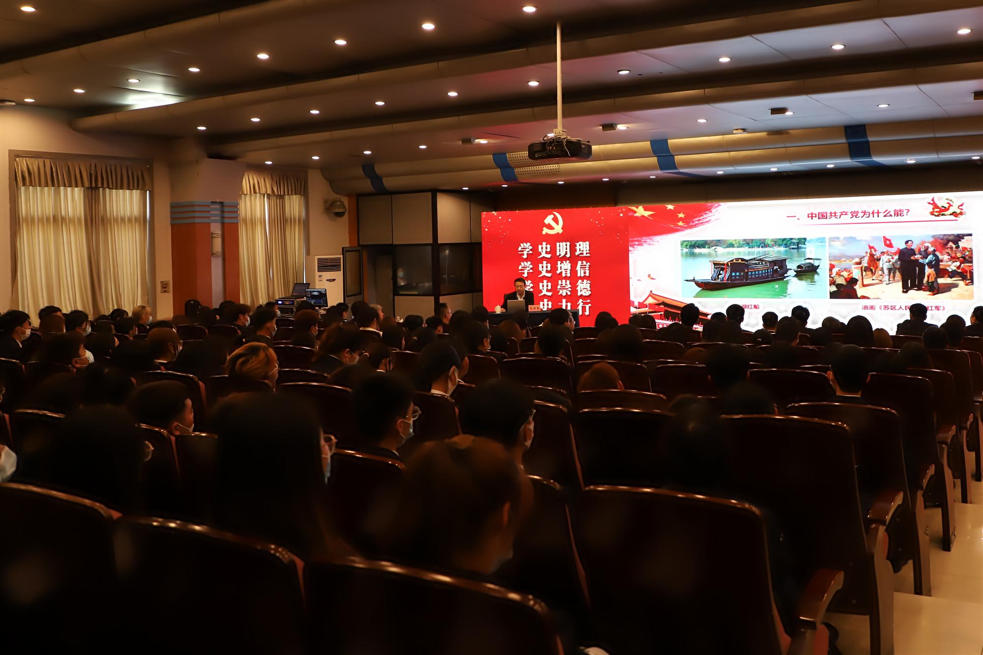 高洪雷結(jié)合黨史故事,通過(guò)重大事件、重要人物回顧了中國(guó)共產(chǎn)黨百年奮斗的光輝歷程和歷史性貢獻(xiàn),詮釋了共產(chǎn)黨人的革命理想和初心使命。他表示,一要弄清楚中國(guó)共產(chǎn)黨為什么“能”。二要弄清楚中國(guó)特色社會(huì)主義為什么“好”。歷史和實(shí)踐證明,只有社會(huì)主義才能救中國(guó),只有中國(guó)特色社會(huì)主義才能發(fā)展中國(guó)。三要弄清楚“為什么講團(tuán)結(jié)統(tǒng)一”。增強(qiáng)“四個(gè)意識(shí)”,堅(jiān)定“四個(gè)自信”,做到“兩個(gè)維護(hù)”,是我們黨和國(guó)家從勝利走向勝利的重要保證。四要弄清楚“為什么要保持純潔”。要擰緊總開(kāi)關(guān),劃好人生底線,做到慎獨(dú)、慎初。五要弄清楚“為什么要有精神”。人有了精神,就有了追求,有了動(dòng)力,有了靈魂,有了脊梁骨,就有骨氣、志氣、勇氣;沒(méi)有精神,就沒(méi)有追求,就會(huì)失去動(dòng)力,就等于得了軟骨病,缺什么都不能缺精神。