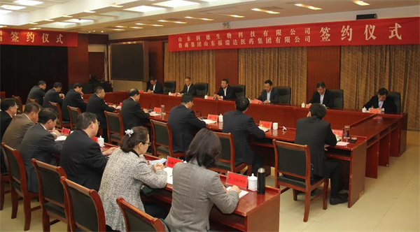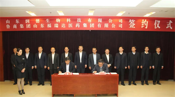 11月12日,魯商集團健康業所屬福瑞達與山東潤德生物科技有限公司(以下簡稱潤德生物)在新泰市簽署協議,魯商集團以山東洪泰福瑞達股權投資合伙企業(以下簡稱福瑞達投資基金)入股潤德生物。魯商集團黨委書記、董事長兼國欣文旅董事長高洪雷,黨委副書記、董事劉守亮,新泰市委書記劉欽海,市委副書記、市長宋鴻鵬,市委副書記桑民,市委深改委副主任、二級巡視員馬秀義,市政協主席夏念新,市委常委、市委辦公室主任趙文坡,副市長賈夫軍,潤德生物董事長盧偉出席簽約儀式。
