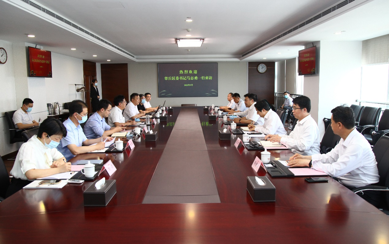 5月24日下午,集團黨委副書記、總經理郭訓成會見來訪的章丘區委書記、明水經濟技術開發區黨工委書記馬志勇一行,章丘區委副書記、區長邊祥為陪同。