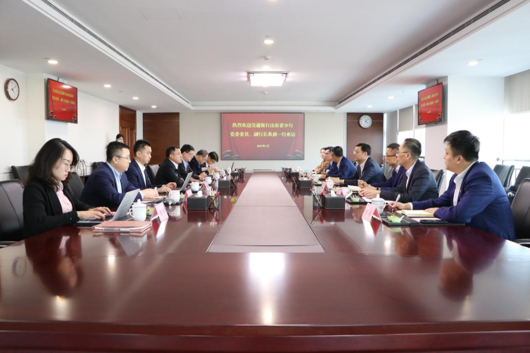 3月1日,交通銀行山東省分行黨委委員、副行長桑劍到訪魯商集團,集團黨委副書記、董事、副總經理朱華建熱情接待并舉行座談。