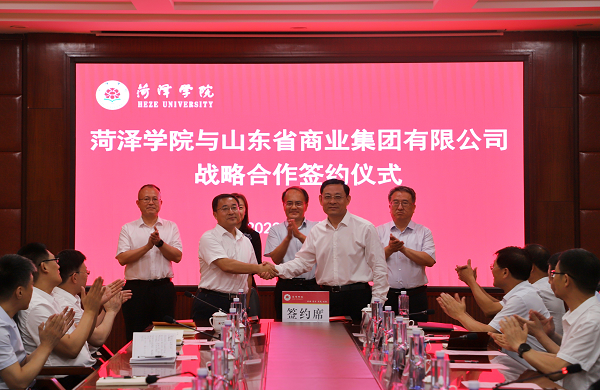 7月4日上午,魯商集團(tuán)與菏澤學(xué)院全面戰(zhàn)略合作簽約儀式在菏澤舉行。菏澤學(xué)院黨委書記黃富峰主持,黨委副書記、院長(zhǎng)孫建昌與魯商集團(tuán)黨委副書記、董事、副總經(jīng)理朱華建代表雙方簽署戰(zhàn)略合作框架協(xié)議,菏澤學(xué)院黨委委員、副院長(zhǎng)孟令美參加儀式。