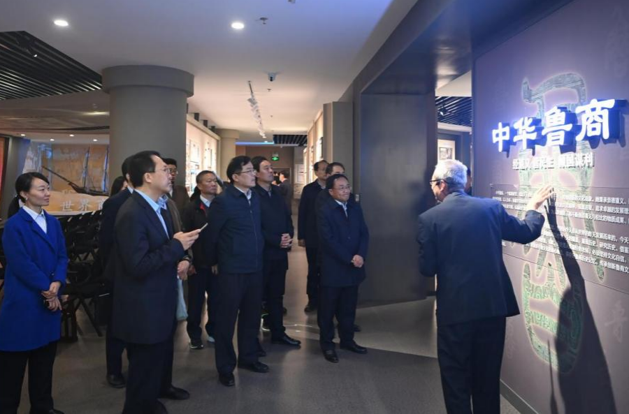 為深入學習貫徹習近平文化思想,落實全國、全省宣傳思想文化工作會議精神,11月22日,省國資委黨委組織召開省屬企業宣傳思想文化工作會議,當天上午的觀摩活動中,與會人員走進山東商職學院商文化研學中心參觀交流。魯商集團黨委副書記、董事劉守亮,政工教科部、山東商職學院負責人陪同。