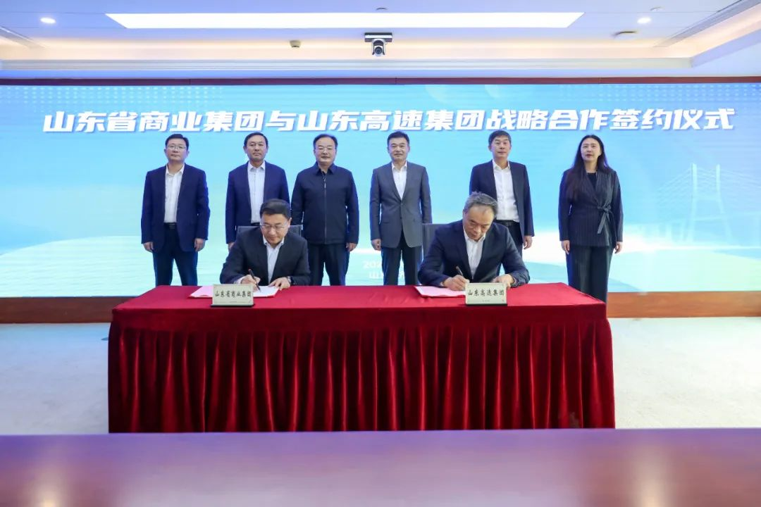 1月23日,魯商集團與山東高速集團簽署戰略合作協議。魯商集團黨委書記、董事長王緒超,山東高速集團黨委書記、董事長王其峰出席簽約儀式并致辭。魯商集團黨委副書記、董事、總經理朱華建,黨委副書記、董事張洪東,山東高速集團黨委常委、副總經理張仰進、賽志毅參加活動。