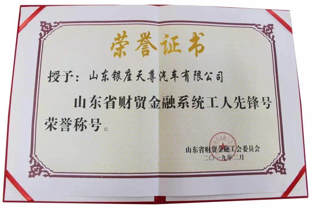 近日,山東銀座天尊汽車有限公司(以下簡稱“銀座天尊”)被山東省財貿金融工會委員會授予“山東省財貿金融系統工人先鋒號”稱號,這是山東銀座汽車有限公司實施九大管理體系以來,直屬單位獲得的又一項重要榮譽。