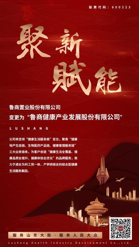 隨著醫(yī)藥健康板塊的注入以及集團(tuán)的部署要求,魯商置業(yè)的公司名稱也進(jìn)行了變更,在本月,“魯商置業(yè)股份有限公司”順利更名為“魯商健康產(chǎn)業(yè)發(fā)展股份有限公司”。