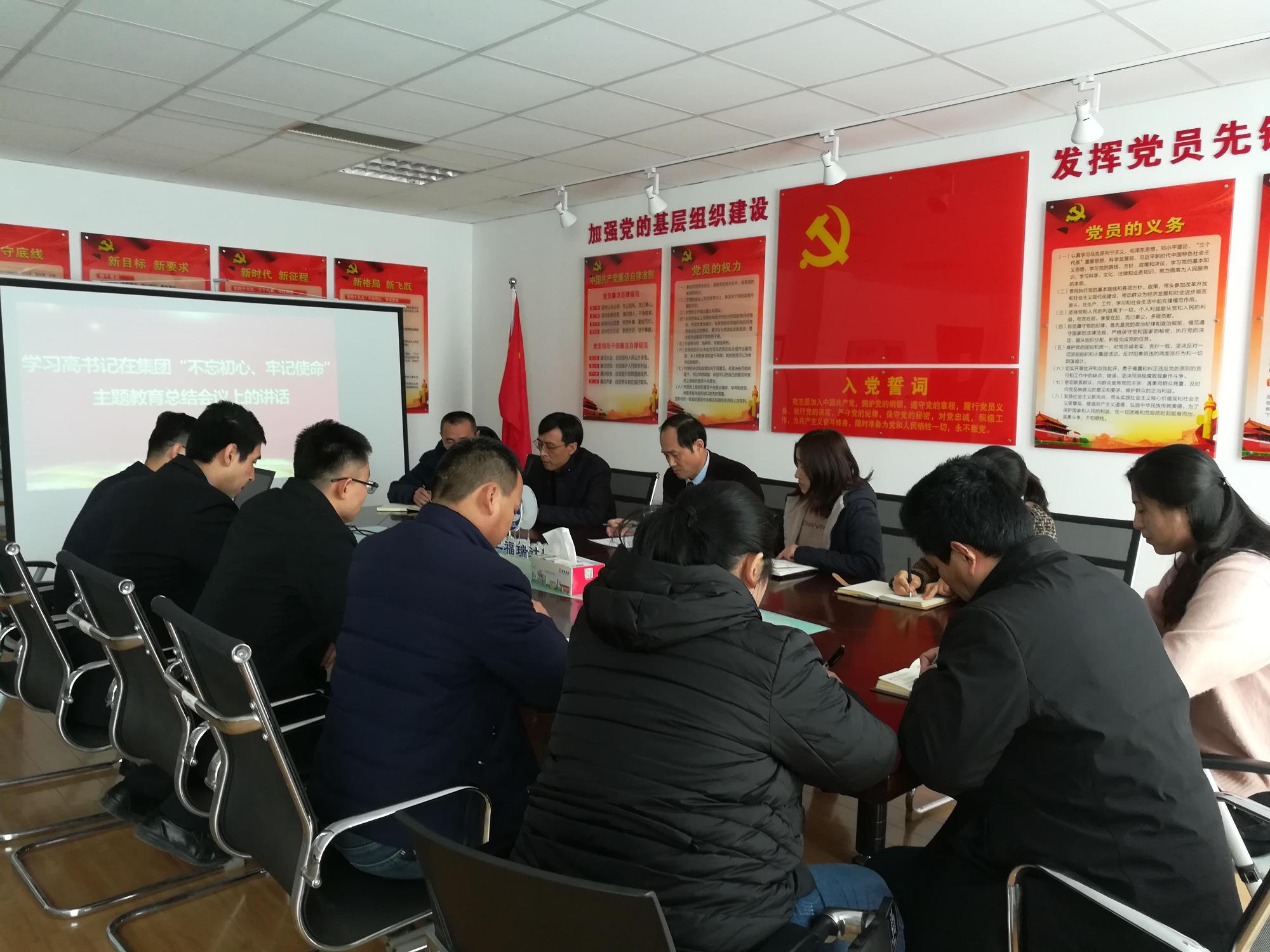 1月17日,福瑞達(dá)醫(yī)藥集團(tuán)各部位統(tǒng)一組織中層管理人員,集中學(xué)習(xí)省商業(yè)集團(tuán)有限公司黨委書記、董事長兼省文旅集團(tuán)董事長高洪雷在“不忘初心、牢記使命”主題教育總結(jié)會議上的講話精神。