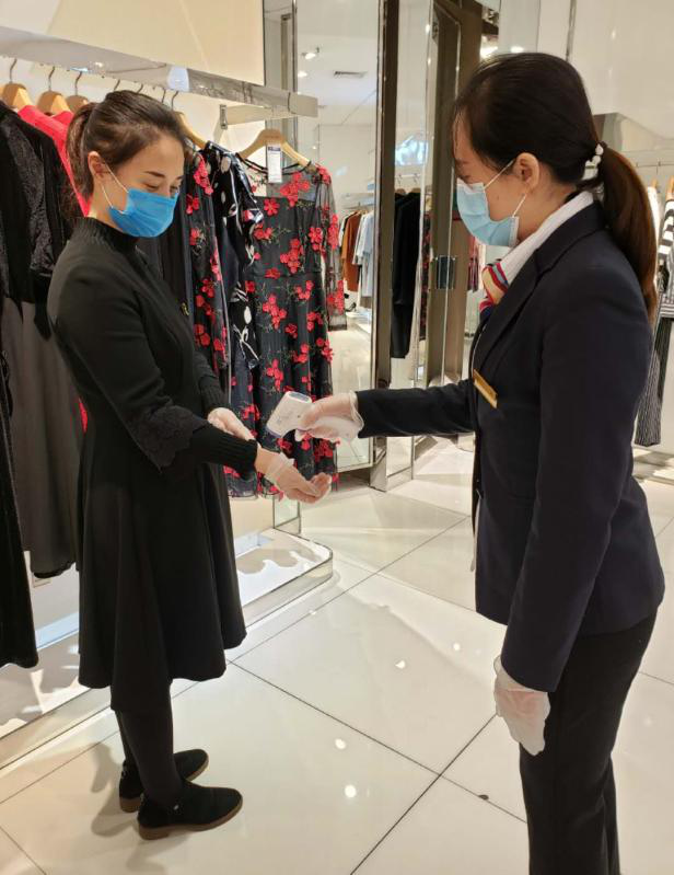 復工準備期間,她積極聯系供應商,安排品牌分批次、有條不紊地進場打掃衛生。對于消殺工作,她不放過任何細節,每個品牌都要親自檢查,只要發現不合格、不規范的,責令立即整改。自復工以來,她每天都忙碌在防疫一線,積極為商場引流,拓展商場銷售業績。同時堅持在正門口引導進場顧客掃碼消毒,全力以赴、負重擔當。同事和老顧客們都對她豎起大拇指,連連稱贊。