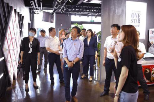 鄉(xiāng)發(fā)展一行先后參觀了JN150創(chuàng)意園黨建服務中心、主題廣場、合幾空間等園區(qū)業(yè)態(tài)和進駐企業(yè),深入了解園區(qū)黨建、招商及商業(yè)模式情況。