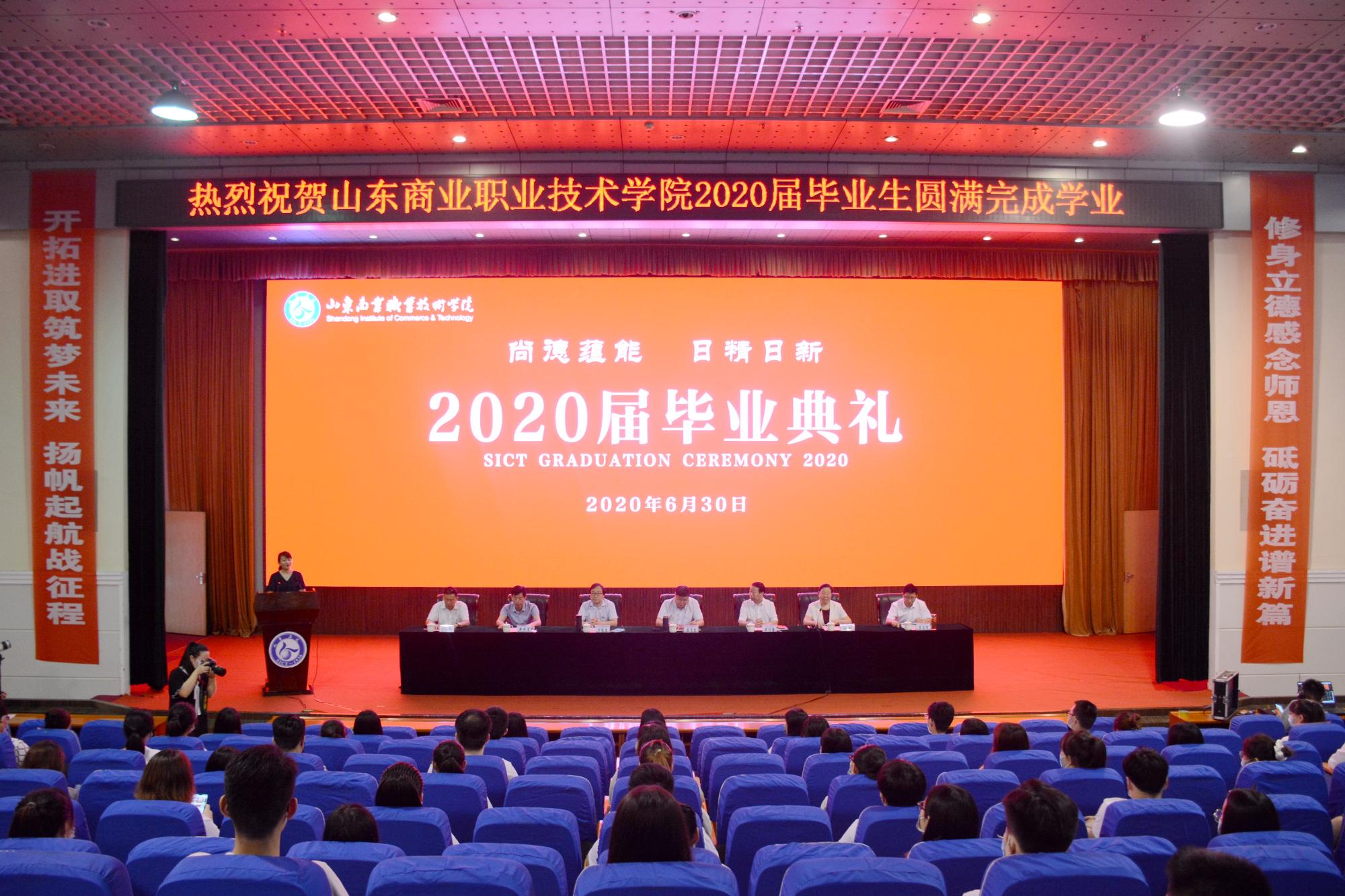6月30日,山東商院2020屆學生畢業典禮舉行,以線上直播、線下會場相結合的方式歡送畢業生。