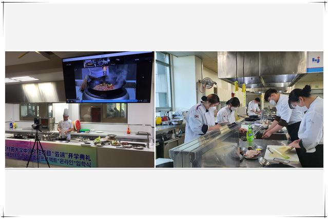 9月21日中午,2020年韓國彗田大學中國烹飪項目——中國魯菜網(wǎng)絡教學“云端”開學典禮在青島酒店學院中餐實訓室舉行。