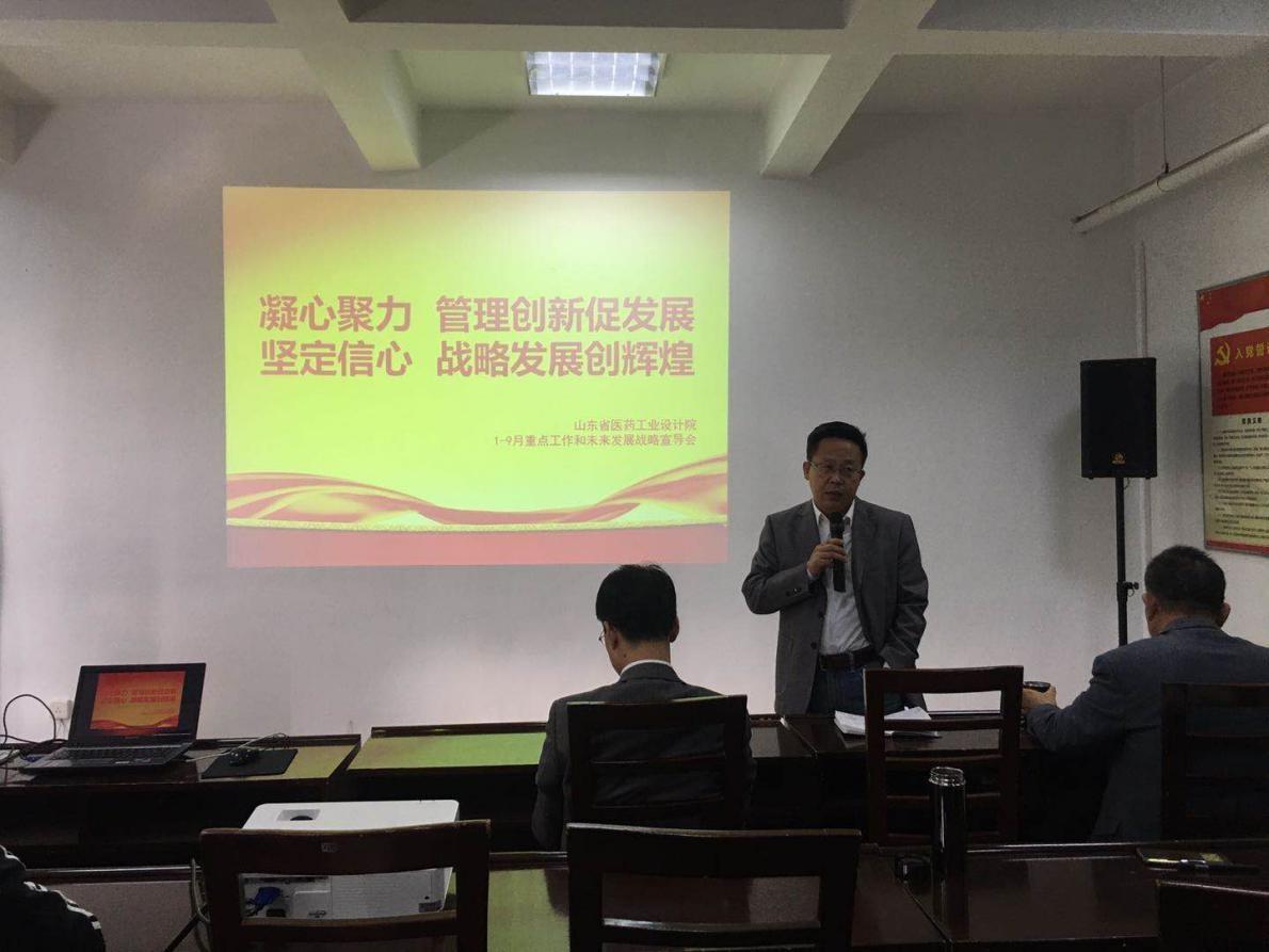 管理創新促發展,戰略發展創輝煌。10月12日上午,省醫藥工業設計院召開1-9月重點工作和發展戰略宣導會,黨總支書記、院長黃曉東主持會議,全院干部職工160余人參加會議。