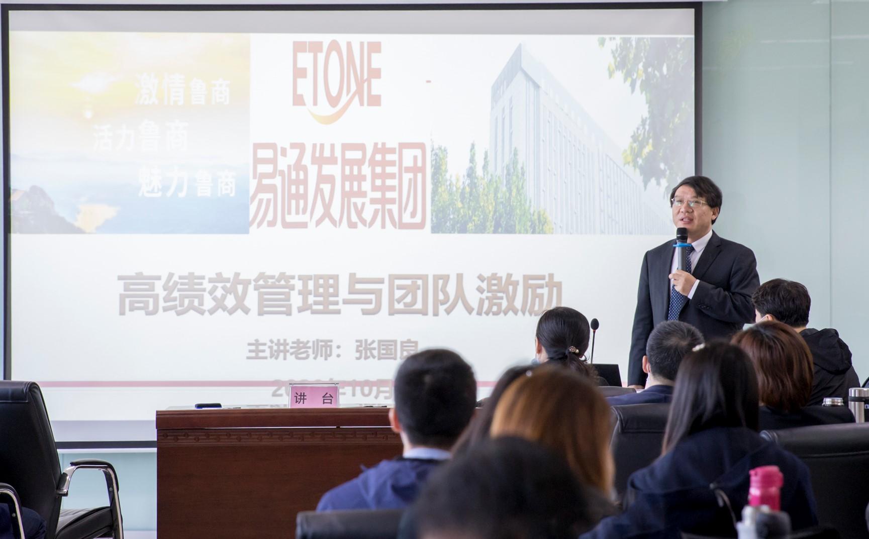 為貫徹落實(shí)集團(tuán)創(chuàng)新工作精神,切實(shí)推動(dòng)干部隊(duì)伍建設(shè)與工作質(zhì)量提升,強(qiáng)化打造學(xué)習(xí)型組織,易通推出“賦能·突破--干部提升”系列培訓(xùn)計(jì)劃,于10月17日成功開班并開展首期培訓(xùn)。本次培訓(xùn)邀請清華大學(xué)職業(yè)經(jīng)理人訓(xùn)練中心特聘講師、北京大學(xué)總裁班特聘講師、第八屆中國企業(yè)教育百強(qiáng)人力資源專業(yè)十佳培訓(xùn)師張國良,圍繞“高績效管理與團(tuán)隊(duì)激勵(lì)”主題作專題培訓(xùn),公司班子成員、各經(jīng)營部位班子與條線負(fù)責(zé)人等60余人參加。