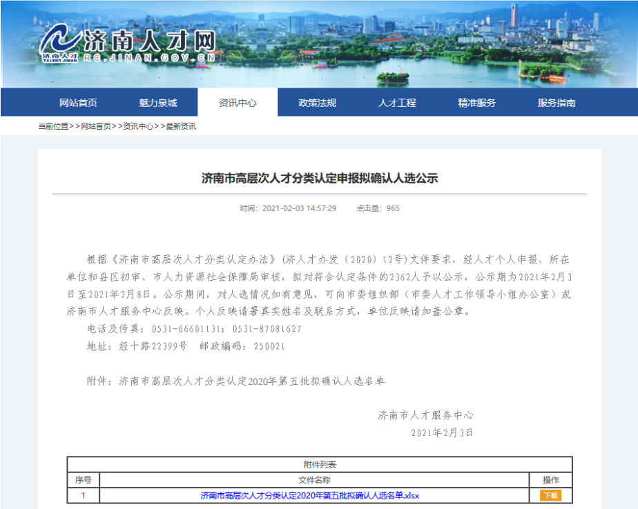 2月3日,濟南市人才網公示了2020年第五批濟南市高層次人才確認人選,省藥科院有3名省級領軍人才、4名市級領軍人才、91名高級人才進入名單。