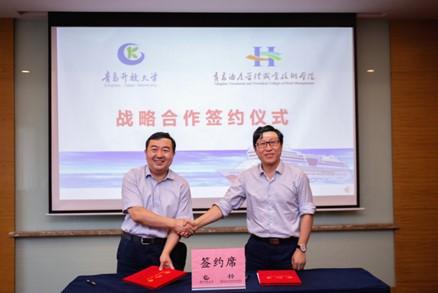 6月10日上午,青島酒店學(xué)院與青島開(kāi)放大學(xué)在旅游酒店實(shí)訓(xùn)中心多功能廳舉行戰(zhàn)略合作簽約儀式。青島開(kāi)放大學(xué)校長(zhǎng)張錫科、副校長(zhǎng)孫明明,青島酒店學(xué)院院長(zhǎng)姜玉鵬、副院長(zhǎng)張宗國(guó)參加簽約儀式。