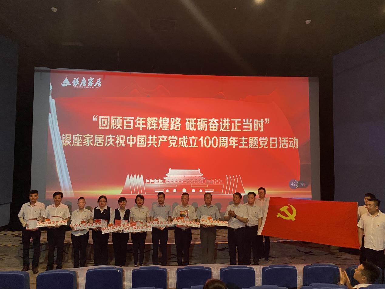為慶祝中國共產(chǎn)黨成立100周年,7月1日下午,銀座家居黨委開展“回顧百年奮斗路 砥礪奮進(jìn)正當(dāng)時(shí)”主題黨日活動(dòng),為7月入黨的黨員同志集體過“政治生日”,并組織濟(jì)南區(qū)域黨支部70余名黨員觀看建黨百年獻(xiàn)禮之作——電影《1921》。