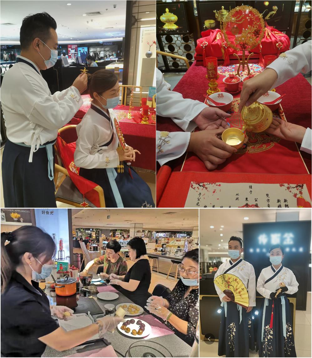 銀座商城名品商場從金九銀十“婚慶季”切入,聯(lián)合珠寶品牌開展傳統(tǒng)文化宣傳活動,商場員工身著漢服,配以高定珠寶,古韻與新潮碰撞,渲染節(jié)日氛圍的同時盡顯國韻風(fēng)華,形成了一道亮麗的風(fēng)景線;家具商場推出月餅DIY沙龍活動,專業(yè)烘焙師傅現(xiàn)場教學(xué),廣式月餅、酥皮月餅、鮮肉月餅、冰皮月餅......各類月餅應(yīng)有盡有,受到顧客一致好評。銀座八一店、七里山店、華信店等也結(jié)合自身特色推出一系列促銷活動,點燃了廣大顧客的消費熱情。