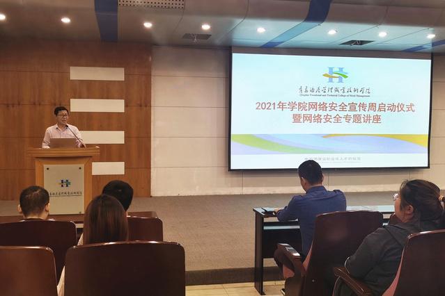 10月11日,青島酒店學院舉行2021年網絡安全宣傳周啟動儀式暨網絡安全專題講座。學院副院長張宗國參加活動。