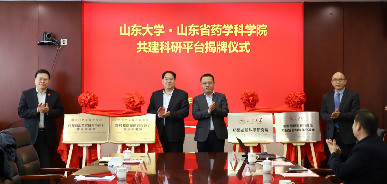 12月3日,國家藥監(jiān)局藥品監(jiān)管科學研究基地、糖藥物質量研究與評價重點實驗室、藥物制劑技術研究與評價重點實驗室、山東大學藥品監(jiān)管科學研究院4個重大科研平臺揭牌儀式在省藥科院隆重舉行。魯商集團黨委副書記、董事劉守亮,省藥監(jiān)局規(guī)劃財務和科技處處長張立軍,山東大學齊魯醫(yī)學院副院長劉奇跡、藥學院黨委書記王秋生、藥品監(jiān)管科學研究院執(zhí)行院長王鳳山、藥品監(jiān)管科學研究院副院長臧恒昌,省藥科院黨委書記、理事長、院長張岱州出席活動。