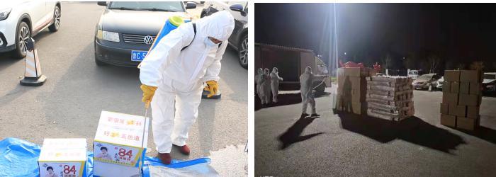 學院專人對供應物資外包裝進行集中消殺,后勤人員和教職工志愿者規范穿戴防護服迅速到達現場,有序裝車,運進校園。由于校內沒有大型運輸工具,只能用小型貨車、三輪車、小拖車,組成臨時“運輸小分隊”,各類車輛往返校門口與食堂400多次,運輸小分隊每人每天平均工作13.5小時,用雙腳打通食材供應的“最后一公里”。
