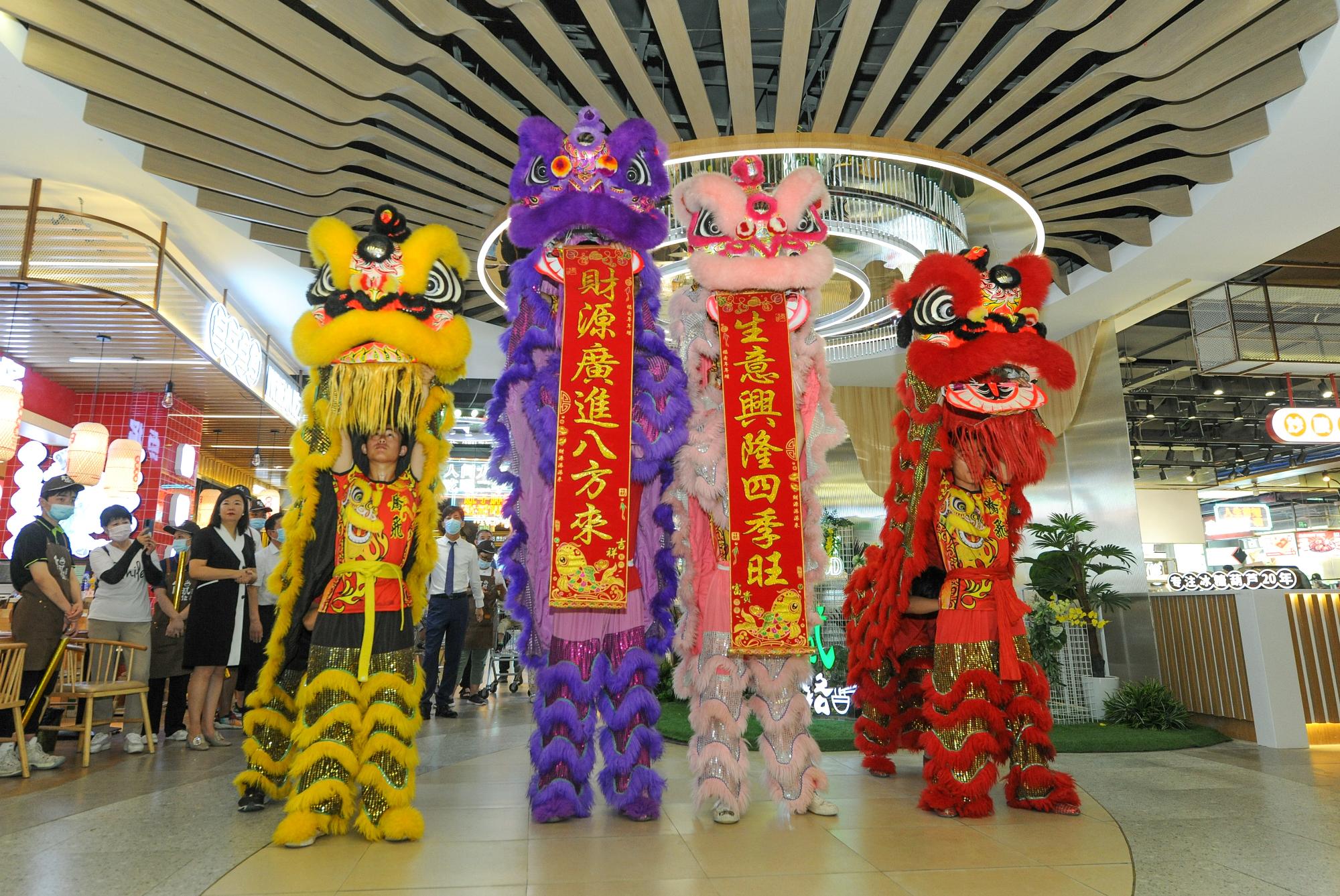 活動現場,伴著鏗鏘鼓樂,精彩的醒獅表演在騰挪漫步、跳躍嬉戲中,將生龍活虎、蒸蒸日上的精氣神表現的淋漓盡致,引來眾多顧客的駐足和喝彩。