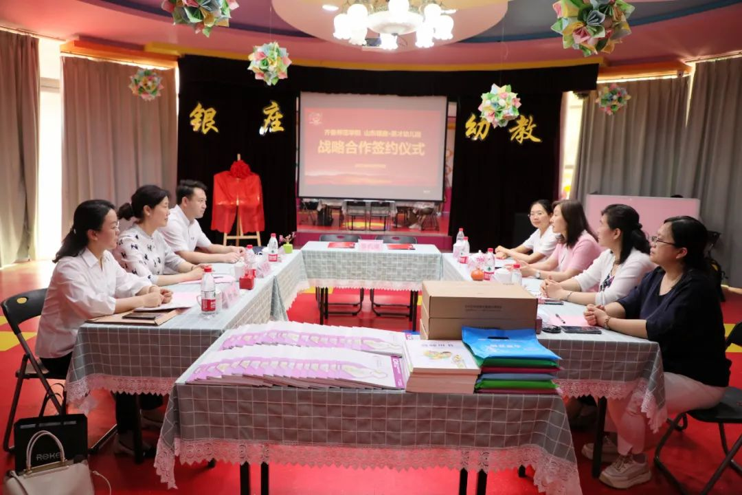 鄭海斌介紹了齊魯師范學(xué)院學(xué)前教育學(xué)院的基本概況。他表示,希望雙方以此次簽約為契機(jī),強(qiáng)強(qiáng)聯(lián)合、互助共贏,在師資培訓(xùn)、人才培養(yǎng)、實(shí)訓(xùn)實(shí)操等方面展開深度合作,共建教學(xué)實(shí)習(xí)實(shí)踐基地,共同助力學(xué)前教育事業(yè)發(fā)展。
