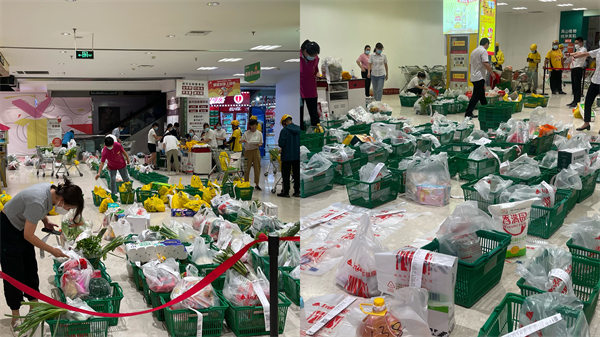為保證貨源、穩定物價,各門店切實扛起國企責任擔當,充分發揮區域自采優勢,積極拓展貨源,優化采購、倉儲、配送、提貨等各個環節,保障蔬菜水果、肉蛋奶、米面糧油等民生商品供應充足,守護好老百姓的“菜籃子”“肉盤子”“米袋子”。各門店積極組建“社區銷售服務群”,不斷完善線上履約、接單、揀貨、配送等流程,及時將物資送到廣大群眾手中,確保居家期間物資不斷檔,安心抗疫。