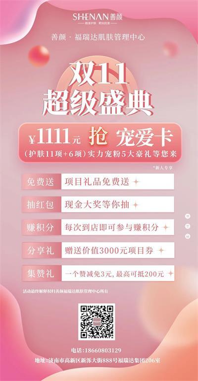 善顏品牌在小紅書(shū)、微博、抖音等各大分享平臺(tái)獲得眾多達(dá)人推薦,其中,品牌重點(diǎn)發(fā)力抖音達(dá)播渠道,善顏透明質(zhì)酸鈉液態(tài)飲單品單場(chǎng)銷售量突破70萬(wàn)元。截至目前,線上全渠道銷售額同比增長(zhǎng)1396%。濟(jì)南線下13家門(mén)店同步推出1111元搶寵愛(ài)卡、“護(hù)膚項(xiàng)目+禮品”等5大豪禮實(shí)力寵粉,定制化服務(wù)項(xiàng)目極大提升消費(fèi)者購(gòu)物體驗(yàn)。