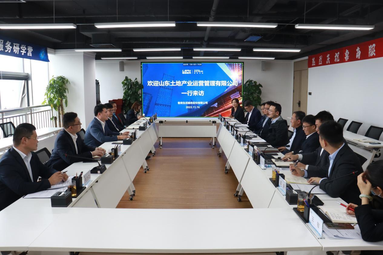 11月16日,山東土地產(chǎn)業(yè)運(yùn)營(yíng)管理有限公司董事長(zhǎng)宋偉、總經(jīng)理許建一行到訪魯商服務(wù),雙方就業(yè)務(wù)合作進(jìn)行交流,魯商服務(wù)董事長(zhǎng)包松熱情接待并組織座談。