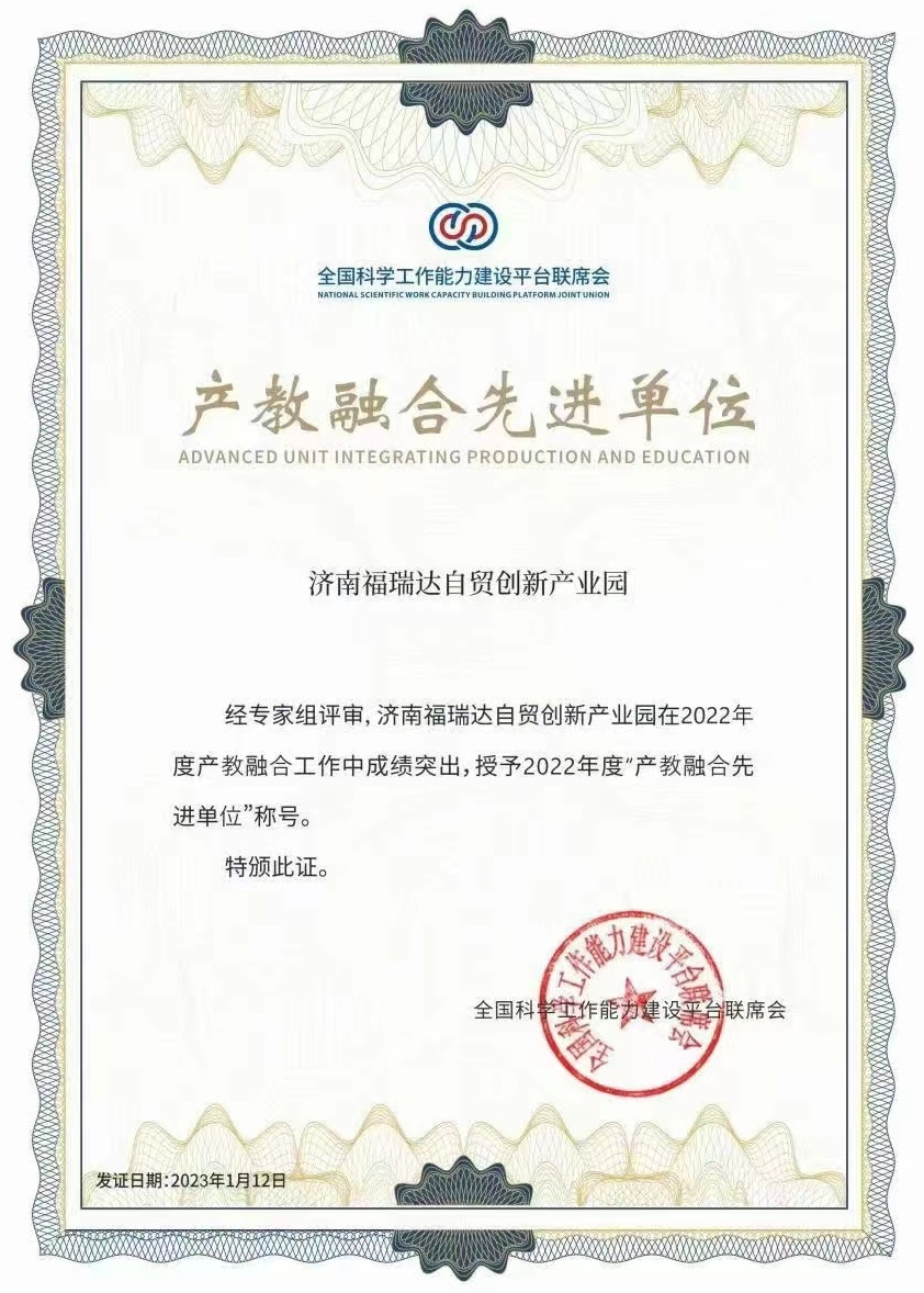 近日,濟啤集團福瑞達自貿(mào)創(chuàng)新產(chǎn)業(yè)園被全國科學工作能力建設(shè)平臺聯(lián)席會授予2022年度“產(chǎn)教融合先進單位”榮譽稱號。