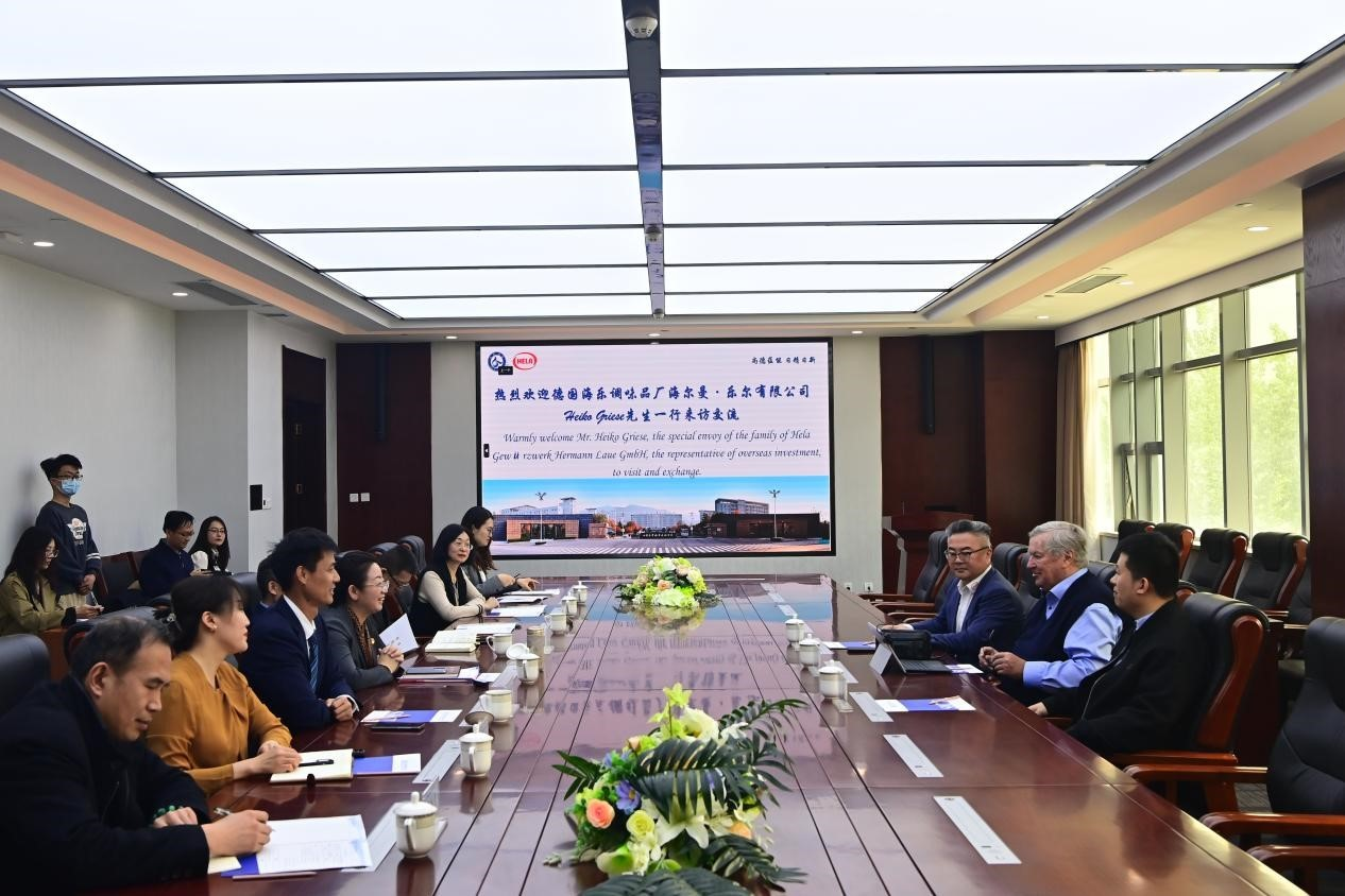4月12日,德國海爾曼·樂爾有限公司家族特使、海外投資代表Heiko Griese一行3人到訪山東商院,就食品產業實訓基地暨海樂德式香腸研創中心建設情況、德國海樂“師徒制”人才培養實踐等相關工作進行研討。山東商院黨委副書記、院長王鑫,黨委副書記宋超參加活動。