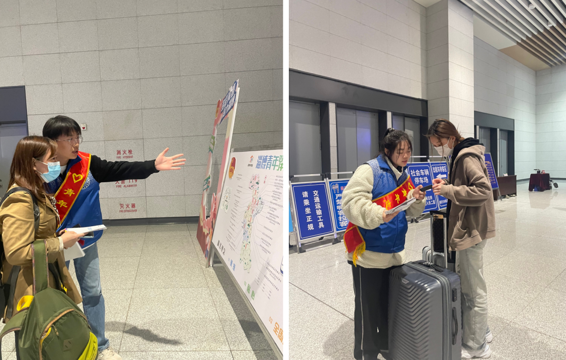 青年志愿者為組團來淄各界朋友提供路線引導、問題解答、推介宣傳、協助申請入住青年驛站等服務,為大學生宣傳淄博市“人才金政50條”、介紹市內旅游攻略等信息,助力淄博“青年發展友好型城市”建設。