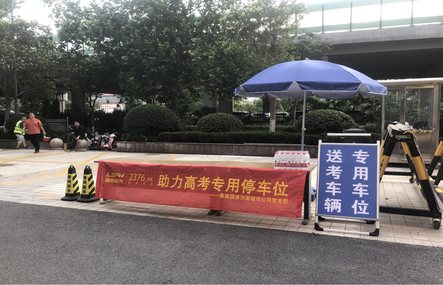 考慮到多名考生在魯商服務銀座晶都項目園區公寓居住,項目在一個月前就著手準備助考事宜。項目管家每天一早發布天氣預報,提醒家長及時應對天氣變化;發起靜音倡議,引導業主錯時裝修,降低對考生的影響;在高考前24小時,項目對車位進行重新劃分,為陪考家長停車創造便利條件,抽調專門服務人員在實驗中學考點前搭建愛心助考點,為陪考家長及考生免費提供飲水、扇子、文具等物品。