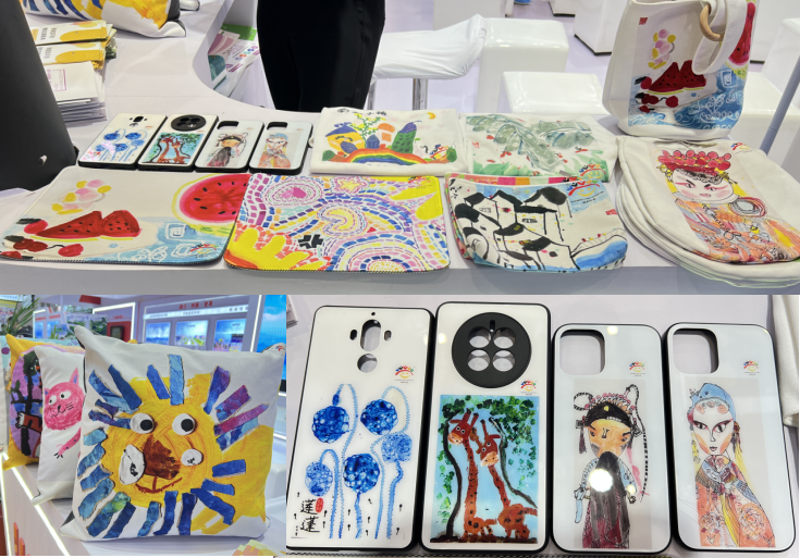展區(qū)一角,一排排色彩繽紛的帆布包、鼠標(biāo)墊、抱枕以及T恤衫,頻頻引得觀展者前來詢問?!斑@些物品上的圖案,都是銀座幼教的小朋友們手繪的,最小的年齡不到3歲,最大的是6歲。”參展教師介紹道。作為全國幼教領(lǐng)軍品牌,銀座幼教還通過特色課程現(xiàn)場展示,讓眾多觀展者對其有了更加深入的認(rèn)知。