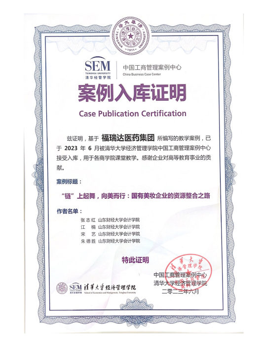 近日,福瑞達(dá)聯(lián)合山東財(cái)經(jīng)大學(xué)以福瑞達(dá)美妝板塊價(jià)值創(chuàng)造模式為研究對(duì)象編制的《“鏈”上起舞,向美而行:國(guó)有美妝企業(yè)的資源整合之路》企業(yè)案例被正式收錄于清華大學(xué)經(jīng)濟(jì)管理學(xué)院中國(guó)工商管理案例庫。