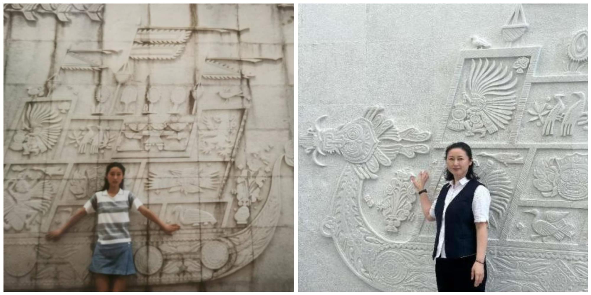 9月16日,銀座濟(jì)南商城店西下沉龍壁修復(fù)完成,已在其他門(mén)店工作的員工金輝聽(tīng)聞后,特地拿著26年前的照片前來(lái)打卡留念。對(duì)她來(lái)說(shuō),這組照片不僅記錄著自己的青春流轉(zhuǎn),更堅(jiān)定了她與銀座一路前行的信心。