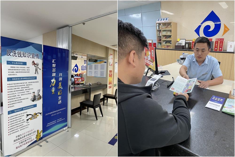 易通金服營業廳各網點持續開展金融知識教育普及,在柜臺擺放宣傳折頁,宣傳專員為客戶講述反詐識詐案例,對如何維護消費者自身合法權益、如何防詐騙、如何正確使用銀行卡、支付賬戶等問題進行講解。