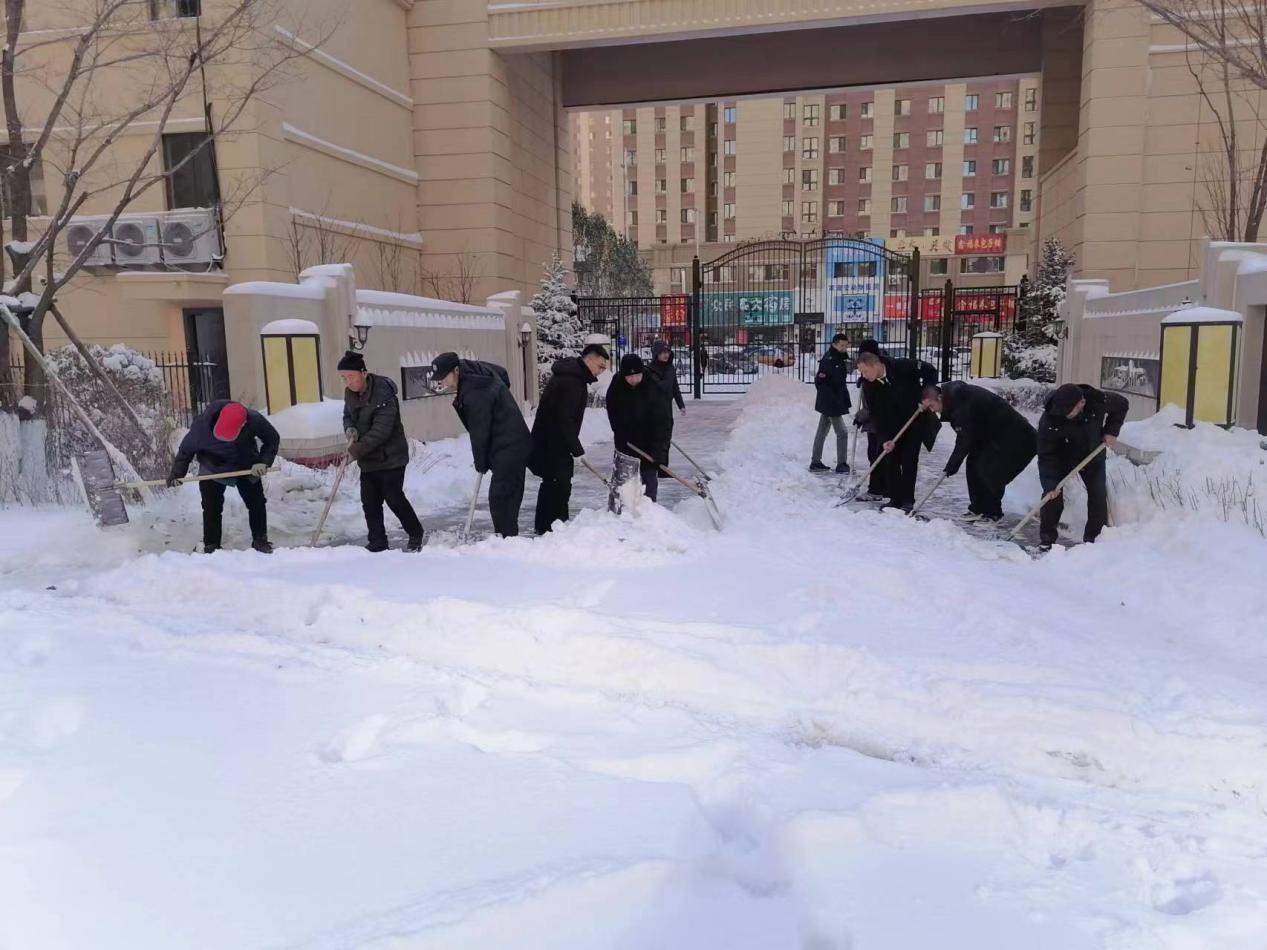 11月5日,哈爾濱遭遇今冬首場暴風雪,魯商服務哈爾濱城市公司啟動應急預案,開展風險排查、積雪清掃等工作,全力保證廣大業主的出行安全。