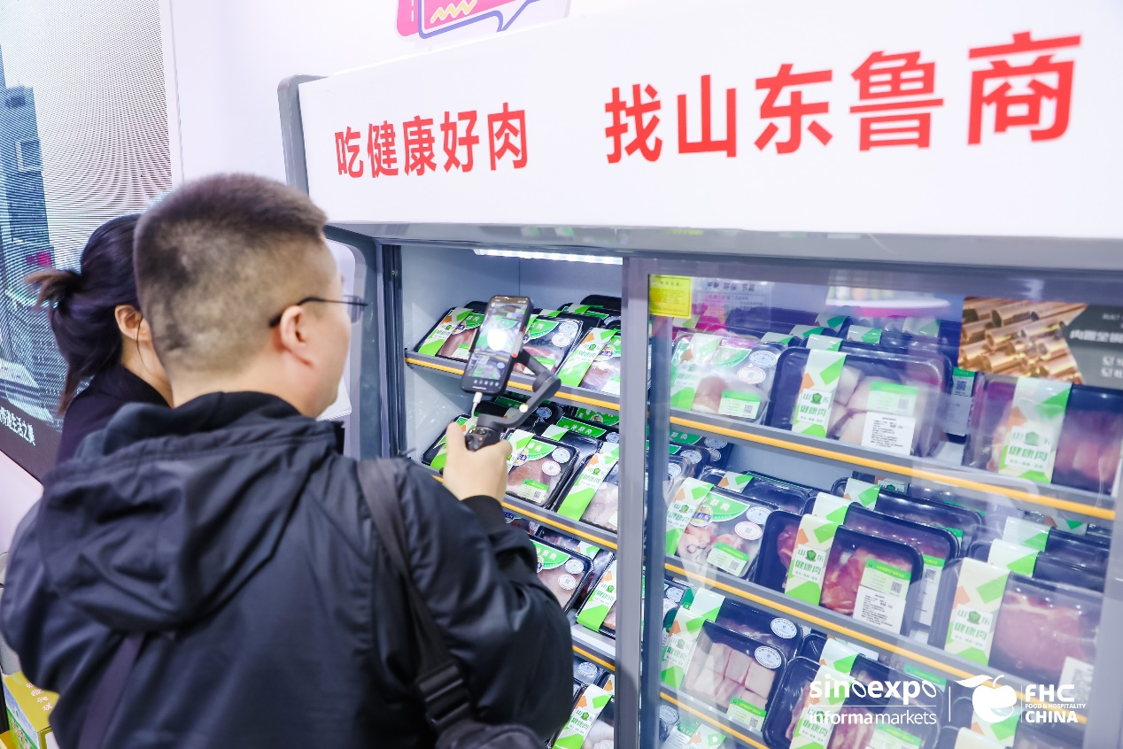 展會現(xiàn)場,山東健康肉項目憑借其健康營養(yǎng)、標識統(tǒng)一、安全可溯源的產(chǎn)品特性,吸引眾多中外友人拍照打卡、駐足問詢。